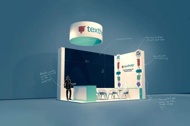 The stand for Text Help was designed, project managed and fitted by the MAD Colour team and had the largest digital screen at the entire